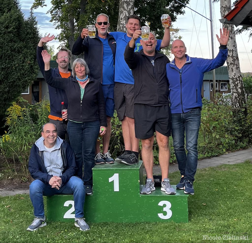 Nach einer weiteren Runde liefen ins Ziel (und das war auch das endgültige Ergebnis): Juiced, Fortune, Shalom 2, Havelpirat, MaLi und Razzle Dazzle. Danach: Würstchen, Erfrischung, Podium und Ausklingen. War ein schöner „letzter Spieltag“.